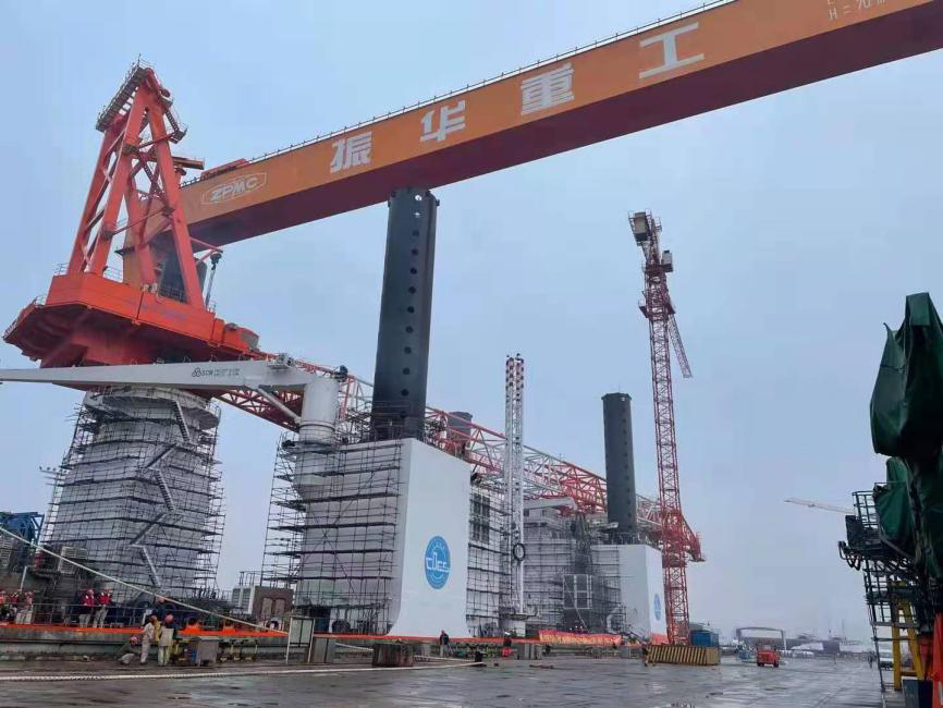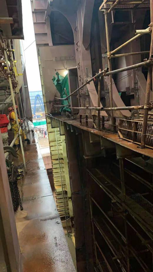 1200T風電安裝船南通豪通船務有限公司,除承接主船體制作及合攏外。更是承接了該船三分之二的特殊結(jié)構(gòu)制作及合攏(包含3個圍井分段2個固樁室)工程。這些工程對精度和焊接質(zhì)量有著較高的要求,總經(jīng)理薛志堅掛帥督導,安排最優(yōu)秀的裝配班組和最好的焊工,將一份優(yōu)異的成績單交到了船東和振華重工手中,得到了業(yè)主的肯定。